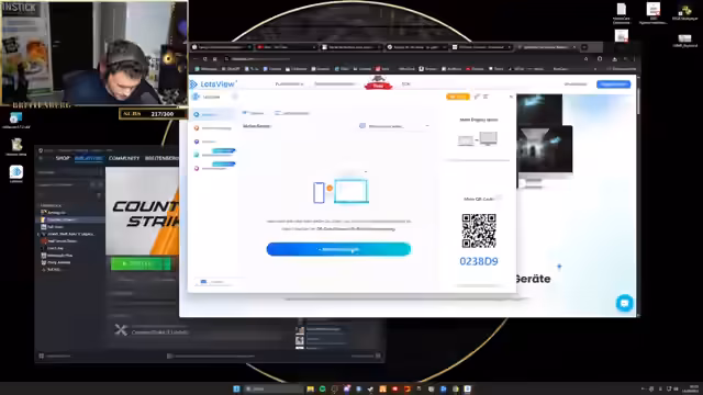 11:07:58Der Streamer versucht, Clash Royale auf dem PC zu spielen, indem er seinen Handy-Bildschirm überträgt. Dies führt jedoch zu erheblichen technischen Herausforderungen, da die Verbindung nicht stabil und die Software umständlich zu bedienen ist. Nach mehrfachen Versuchen und Fehlschlägen gibt er das Vorhaben vorerst auf, um sich einem anderen Spiel oder Thema zu widmen.