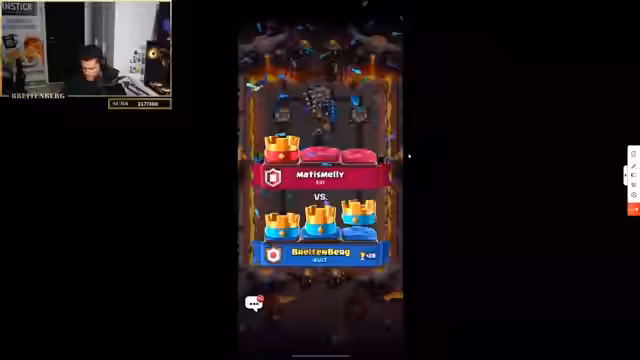 11:37:38Nach der technischen Hürde schafft es der Streamer, Clash Royale zu spielen. In den ersten Runden kämpft er mit einem Decks, das ihm zunächst Probleme bereitet. Nach einigen Anpassungen und der richtigen Strategie findet er jedoch ins Spiel und kann mehrere Runden gewinnen, was ihm sichtbar Freude bereitet und ihn motiviert, weiterzuspielen.
