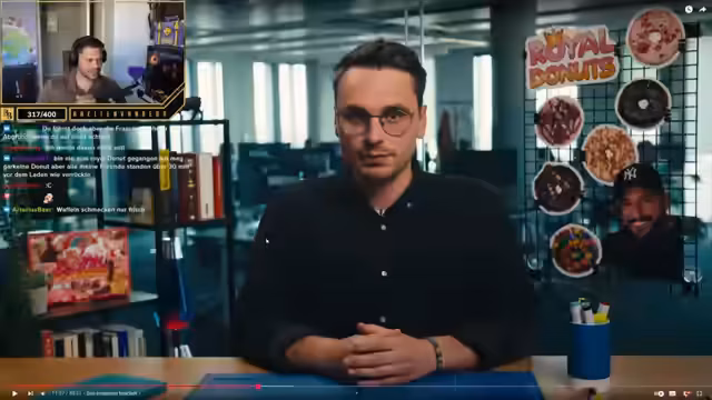 00:06:48Ein zentrales Thema des Streams ist das Video 'Der Untergang von Royal Donuts'. Der Streamer berichtet über den schnellen Aufstieg und ebenso schnellen Niedergang der Donut-Kette. Er erläutert, wie Royal Donuts durch Social Media Marketing und den Hype um Fitness-Events populär wurde, wie sie sich zu einem Franchise-Unternehmen entwickelten, und schließlich warum viele Filialen schließen mussten. Der Streamer diskutiert mögliche Gründe wie die Inflation, hohe Preise für Donuts und Probleme im Franchise-System.