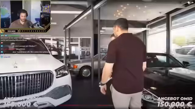 02:30:22Nach der detaillierten Fahrzeugprüfung folgt eine intensive Verhandlungsrunde zwischen Käufer und Verkäufer. Der Streamer spielt die Rolle eines potenziellen Kunden, der dem Autohändler einen Unfallschaden nachweist. Der Verkäufer steht zunächst skeptisch gegenüber, zeigt sich dann aber kooperationsbereit. Nach längeren Verhandlungen einigen sich beide Seiten auf einen Preis von 152.000 Euro, was deutlich unter dem ursprünglichen Angebotspreis von 155.000 Euro liegt. Der Streamer bewundert die professionelle und respektvolle Art des Autohändlers, trotz der prekisen Situation.