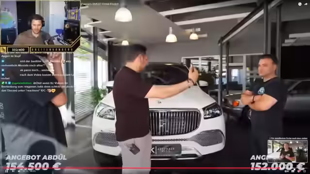 01:53:04Der Streamer und sein Begleiter besuchen das Autohaus Kisil, um einen GLS Maybach zu begutachten. Dabei diskutieren sie über den extremen Wertverlust von Neuwagen, insbesondere bei Mercedes-Modellen. Nach eingehender Untersuchung des Fahrzecks stellt sich heraus, dass es trotz Unfallfreiheit-Versicherung tatsächlich einen Frontschaden hatte, der wahrscheinlich vor der Zulassung in Deutschland repariert wurde. Der Streamer empfiehlt dringend, vor jedem Autokauf eine professionelle Abfrage wie bei CarVertical durchführen zu lassen, um solche unangenehmen Überraschungen zu vermeiden.