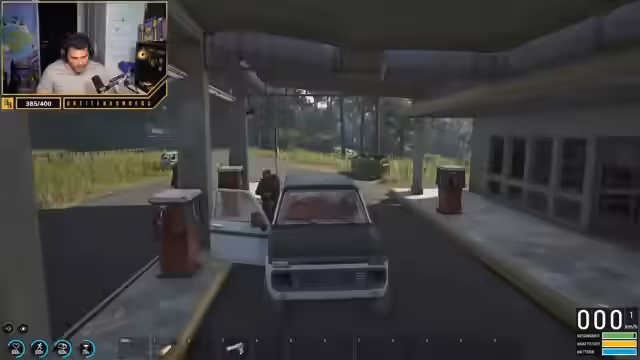 08:36:19Die Spieler navigieren mit ihrem Fahrzeug durch die Spielwelt, um die Tankstelle zu erreichen und Benzin zu tanken. Es kommt zu technischen Problemen beim Ein- und Aussteigen des Fahrzeugs, was zu chaotischen Situationen führt. Die Gruppe koordiniert ihre Bewegungen und versucht, ihr Fahrzeug sicher zu steuern, während sie gleichzeitig auf potenzielle Gegner achten. Die Notwendigkeit von Benzin für das Quad und andere Fahrzeuge wird betont, um die Bewegungsfreiheit aufrechtzuerhalten.
