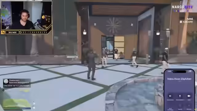 08:18:55Der Streamer und sein Team versuchen, die störende Gruppe der Gäste zu entfernen. Der Sicherheitsdienst Kassal ist jedoch überfordert und kann die Situation nicht deeskalieren. Der Streamer ruft daraufhin Hilfe von der Narcos-Familie an und fordert die Rausgewiesenen auf, das Gebäude zu verlassen. Die Drohung der Narcos führt dazu, dass die Gruppe schließlich widerwillig geht. Der Streamer entschuldigt sich bei den verbleibenden Gästen für den Zwischenfall und verspricht, das Sicherheitspersonal für zukünftige Events zu verbessern.