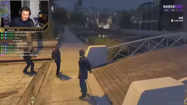 04:04:33Im Verlauf des Streams kristallisiert sich ein Machtkampf heraus. Breitenberg koordiniert eine Allianz zwischen den Familien Kali und Narcos, um gemeinsam gegen Asyl vorzugehen. Er plant einen koordinierten Angriff auf den Schwarzmarkt und die Waffengeschäfte von Asyl, um die Machtverhältnisse in der Stadt neu zu ordnen und ihren Einfluss zu schwächen.