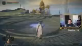 00:13:20Nach einigen technischen Problemen und Navigationsfehlungen beginnt der Streamer mit dem eigentlichen Spiel. Er steuert einen Charakter durch eine düstere Welt, ist anfänglich verwirrt über die Steuerung und das Spielprinzip. Nach kurzer Zeit stößt er auf den ersten Bosskampf, der sofortige Verwirrung auslöst. Obwohl er sich bemüht, die Angriffe des Bosses zu blocken und auszuweichen, wird er schnell besiegt und erlebt so seinen ersten Tod, der die erste Strafe auslöst.