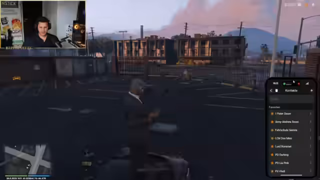 00:07:21Nach anfänglichen technischen Schwierigkeiten, insbesondere bei der Einstellung des Funkgeräts, gelingt es dem Streamer, sich mit dem Marabunta-Team zu verbinden. Er identifiziert sich als 'Baron Breitenberg' und stellt die Forderung, die Hälfte der von der Marabunta eroberten städtischen Gebiete zurückzuerhalten. Ein Dialog mit 'Sonny Savastano Berger', einem einflussreichen Mitglied der Familie, beginnt und eskaliert zu einer ironischen Auseinandersetzung, bei der der Streamer humorvoll um sein altes 'Reich' bittet.
