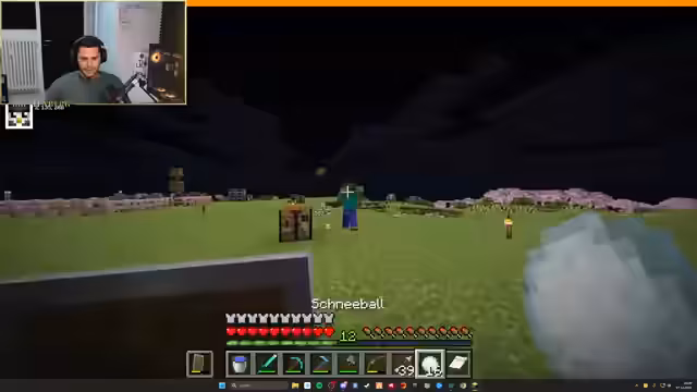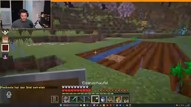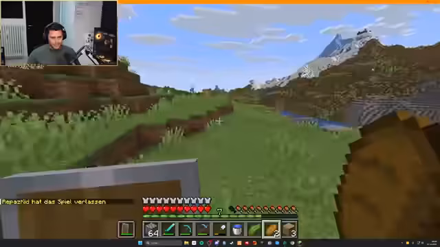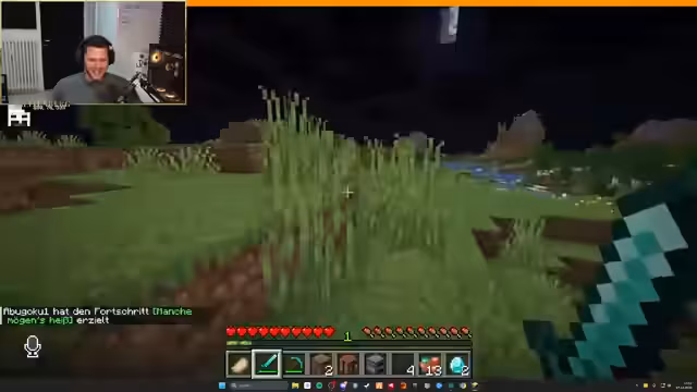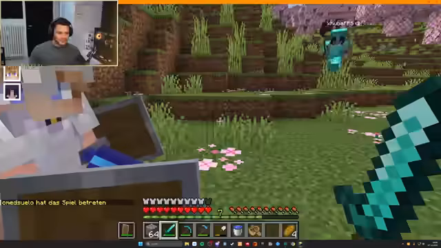 00:05:23Der Streamer stößt auf technische und spielbedingte Probleme, beginnend mit der Ausrüstung von Nick, der in einem Trial Chamber alles verliert, und die ganze Gruppe daraufhin ihre gesammelten Gegenstände verliert. Er bemerkt zudem, dass er keine Ahnung mehr von Minecraft hat und benötigt. Später verliert er bei der Suche nach Nahrung das Bewusstsein und bittet den Chat um Ratschläge zum Überleben und zur Ausrüstung, wie den Bau von Schwertern und Hacken.