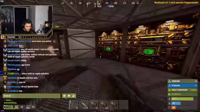 03:44:22Die Gruppe ist in heftige Kämpfe mit Angreifern verwickelt, die ihre Basis attackieren. Es werden Sprengladungen platziert und AKs benutzt, um die Gegner auszuschalten. Die Angreifer scheinen sich in der Nähe der Basis aufzuhalten, was die Verteidigung erschwert. Es herrscht ein Mangel an Stoff, der für die Herstellung von Gegenständen benötigt wird. Die Gruppe versucht, die Angreifer zu looten, um an Ressourcen zu gelangen, was jedoch riskant ist. Ein Spieler wird getötet und muss von einem Teammitglied gerettet werden, um seine Ausrüstung nicht zu verlieren. Die Kämpfe finden sowohl innerhalb der Basis als auch im Außenbereich statt, was die Situation zusätzlich verkompliziert. Die Gruppe konzentriert sich darauf, die Angreifer abzuwehren und ihre Basis zu schützen. Die Kommunikation ist entscheidend, um die Positionen der Gegner zu koordinieren und die Verteidigung zu organisieren. Es wird über verschiedene Taktiken diskutiert, wie man die Angreifer am besten bekämpfen kann, einschließlich des Zerstörens von Leitern und der Nutzung von Holzbarrikaden zur Deckung. Die Situation ist angespannt und erfordert schnelles Handeln und gute Zusammenarbeit, um die Angreifer zurückzuschlagen.