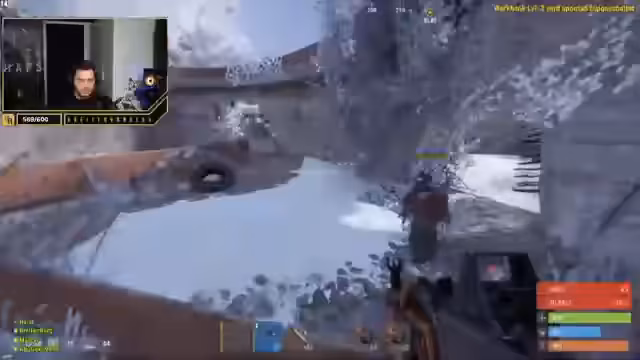 03:24:57Es wird diskutiert, dass Mont und Zamex gesagt haben, dass nur 4 gegen 4 gespielt werden darf, aber die Gegner zu fünft sind. Nach Rücksprache wird entschieden, dass die Person mit dem Fernglas beobachtet. Es wird eine AK gefunden und nach unten gebracht. Die Gegner schießen von unten, was den Rückzug in bestimmte Bereiche unmöglich macht. Es wird gefragt, wie viel die Base aushält und woher die Gegner schießen. Es stellt sich heraus, dass es zwei Holzwände gibt und die Gegner gute Treffer landen. Es wird versucht, den Gegner in den Löchern zu finden, aber es kommt zu Verlusten. Es wird festgestellt, dass man nicht mehr spawnen kann. Raketen werden eingesetzt. Es wird nach Raketen gefragt und der Loot wird in der Mitte der Basis gesammelt. Es wird nach einer zusätzlichen AK gefragt, aber keine ist verfügbar. Die Basis wird weiterhin beschossen und es wird versucht, die Gegner zu treffen. Einer der Gegner zieht sich zurück. Ein Heli wird gesichtet. Es wird diskutiert, ob die Gegner pushen oder was ihr Ziel ist. Die Basis wird repariert. Einer snipet von hinten, vermutlich vom Turm. Drei pushen vor. Es wird diskutiert, welche Waffe die beste für die Distanz ist. Es stellt sich heraus, dass Lloyd das Team verraten hat. Es wird versucht, die Gegner zu töten, aber es fehlt an Ressourcen. Eine Barrikade wird wieder aufgebaut. Es wird diskutiert, ob jemand dazukommen kann, aber es stellt sich heraus, dass dies nicht möglich ist, da bereits vier Personen im Team sind. Es wird festgestellt, dass man nicht zielen kann, vermutlich wegen der schweren Ausrüstung. Es kommt zu weiteren Verlusten und es wird diskutiert, ob man passiv bleiben soll und die Gegner ihre Ressourcen verbrauchen lassen soll. Es wird festgestellt, dass die Gegner close sind und die Tür zumachen. Einer ist oben und hat eine Person gekillt. Es wird versucht, die Türen zu schließen, um die Gegner aufzuhalten. Es wird diskutiert, welche Waffe besser ist, eine AK oder eine Minigun. Es stellt sich heraus, dass Abo gejoint ist, aber fullmute ist. Es wird versucht, mit ihm zu handeln. Es wird festgestellt, dass Lloyd und Chef Stobel sich zusammengetan haben. Es wird diskutiert, wie die Gegner hochgekommen sind. Es wird versucht, defensiv zu spielen und die Positionen zu halten. Es wird festgestellt, dass sich zwei Personen mit blauen Hazmets unter die Gegner mischen. Es wird gegessen und die Positionen werden gehalten. Es wird diskutiert, ob man durch bestimmte Stellen durchschießen kann. Es stellt sich heraus, dass Abu bei den Gegnern in der Basis ist. Es wird versucht, die Gegner auf dem Dach zu treffen. Es wird festgestellt, dass Tridan Chef gekillt hat. Es wird diskutiert, wer wen getötet hat und ob sich die Gegner zurückgezogen haben. Es wird festgestellt, dass Tridan die Situation gerettet hat, indem er die Gegner ge-third partied hat.