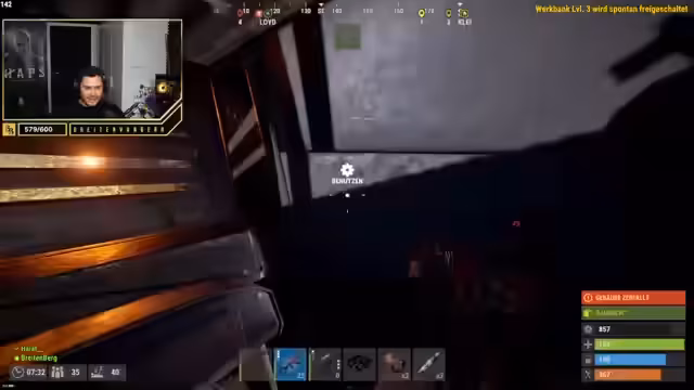 03:27:12Die eigene Base wird aktiv gegen den feindlichen Raid verteidigt. Der Streamer gibt taktische Anweisungen, beobachtet die Positionen der Gegner und meldet Treffer. Es kommt zu hitzigen Gefechten, bei denen die eigene Stabilität der Base auf die Probe gestellt wird. Waffenwechsel und Loot-Probleme werden thematisiert, da wichtige Ausrüstungen wie die AK fallen und ersetzt werden müssen, um den Verteidigungskampf fortzusetzen.