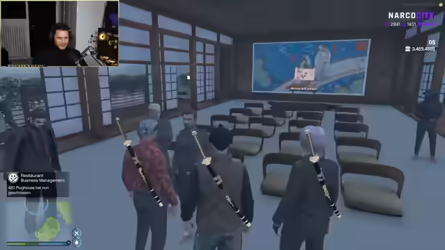 01:24:13Es kommt zu einer respektlosen Konversation mit einer Person, die sich als Breitenbeckerapparat meldet, über die Mitnahme von Aitor. Es stellt sich heraus, dass Aitor zu BBG gehört. Es wird über eine Langwaffe gesprochen, die Aitor gezogen haben soll, was als Grund gesehen wird, gegen BBG vorzugehen. Es folgt ein Gespräch mit jemandem aus dem Rotlichtmilieu, das als Partner bezeichnet wird. Der Streamer gibt an, für das Finanzamt zu arbeiten, was zu einem abrupten Gesprächsende führt. Es wird eine finanzbehördliche Durchsuchung des Rotlichtmilieus angeordnet, da der Verdacht auf schwere Kriminalität besteht. Der Finanzminister der Stadt Marco, Breitenberg, konfrontiert die Betreiber des Rotlichtmilieus wegen angeblicher negativer Äußerungen über ihren Laden. Es wird Steuerhinterziehung vorgeworfen, was zu einer Eskalation führt. Der Streamer wird in den Laden gebracht und gezwungen, sich zu entschuldigen, um im Gegenzug Huren angeboten zu bekommen, was er ablehnt.