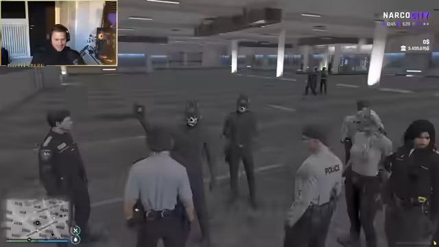 00:53:42Ein unplausibler Beamter durchschaut die Tarnung und verhaftet Streamer und Begleiter. Im Verhör wird die falsche Identität als FIB-Agent aufgedeckt. Die Situation eskaliert, als der Streamer gezwungenermaßen Geständnisse ablegt. Die Polizisten erkennen den Betrug, doch durch eine List und Bestechung gelingt es den beiden, eine Verhaftung abzuwenden und mit einem Fahrzeug zu entkommen.