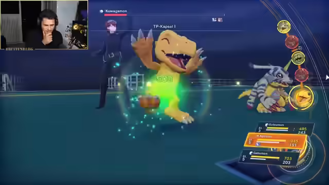 08:45:36Erste Schritte im Spiel werden unternommen, inklusive eines Kampfes gegen ein Mega-Level-Digimon. Es wird überlegt, wie man speichern kann und die Unterschiede zwischen der Ultra-Edition und einer Demo diskutiert. Der Zack-Jumper wird entdeckt und seine Verwendung wird überlegt. Der Kauf der Ultimate Edition für 120 Euro oder die normale Edition für 60-110 Euro wird erwähnt. Es wird überlegt, welchen Weg man einschlagen soll und ein starker Gegner namens Luki wird entdeckt. Experimentiert wird mit verschiedenen Fähigkeiten für die Digimon, wie z.B. Heiliges Licht, und es wird überlegt, welche Fähigkeiten man Drakomon beibringen soll. Drakomon wird ins Team aufgenommen und seine Stärken und Schwächen werden analysiert. Die Besonderheit der Agumon- und Gabumon-Digimon, die man von Anfang an hat, wird hervorgehoben und die Schwierigkeit, sich bei so vielen guten Digimon am Anfang zu entscheiden, wird thematisiert. Es wird überlegt, wie man ein bestimmtes Gebiet überqueren kann und die Charakterwechsel-Funktion wird entdeckt. Ein überraschender Kampf gegen Pria, den Endgegner aus Digimon 1, findet statt und es wird festgestellt, dass die Animationen etwas nervig sind. Patamon erweist sich als sehr nützlich im Kampf und die Persönlichkeitsentwicklung der Digimon, insbesondere von Agumon, wird beobachtet. Es wird eine Schatztruhe gefunden, aber ein Digimon stirbt. Ein Gespräch mit einem anderen Digimon beginnt, und es wird überlegt, wie man mit ihm interagieren soll.