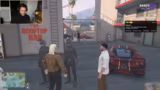 01:39:34Ein kritischer Moment ereignet sich, als Martin, der zunächst als Verbündeter galt, als Verräter enttarnt wird und die Gruppe angreift. Die Streamer geraten in Panik und fliehen in eine Hood. Von dort aus wird Verstärkung angefordert, da sie von bewaffneten Männern verfolgt werden. Die Stimmung ist chaotisch und die Kommunikation untereinander bricht teilweise zusammen, was die Verwirrung und den Gefahrenmoment unterstreicht.