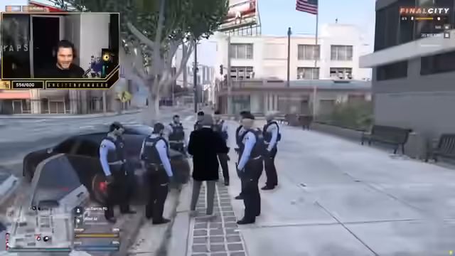 02:14:56Es wird ein Einsatz am Anwesen des Rivera-Kartells angekündigt. Dort soll der neue kriminelle Status vorgeführt und die Festsetzung des Oberhaupts Sergio Mendes vollzogen werden. Beim Eintreffen eskaliert die Situation. Der Rivera-Patron verlangt Zeit, um den Beschluss zu lesen und seinen Anwalt zu konsultieren. Der Streamer insistiert jedoch auf der sofortigen Durchsuchung. Er übergibt die Führung des Einsatzes einem Kadetten und fordert die Rivera-Mitglieder auf, die Hände zu heben, während eine Waffe auf sie gerichtet ist.