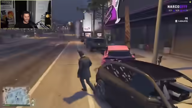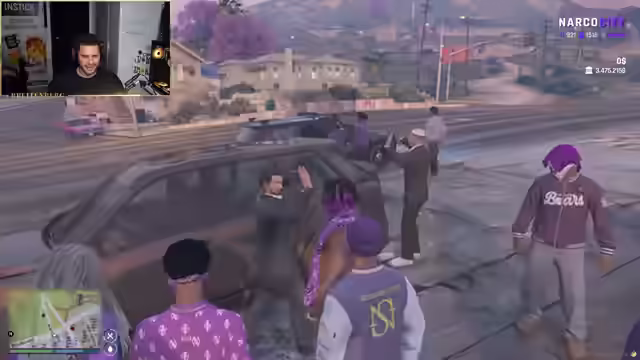 03:25:26Es wird ein Fahrzeug organisiert, um Hampty abzuholen. Die Saints werden als nicht ernstzunehmende Gruppe bezeichnet. Hampty steigt ein und Martin fährt. Während der Fahrt wird festgestellt, dass Martin keinen Führerschein hat. Es wird überlegt, wen man noch nerven könnte, und Santanga wird als Ziel ins Auge gefasst. Es kommt zu einer Konfrontation mit den Ballers, bei der es zu einer Festnahme kommt. Der Streamer kommentiert das Timing und die Chance, einen der Ballers alleine zu finden. Es wird über EA gesprochen und der Streamer äußert seinen Frust über das Programm. Er hatte lange nicht mehr so viele Kopfschmerzen und Probleme. Es wird überlegt, ob man LOL spielen soll. Der Streamer erwähnt, dass er eine Bodycam dabei hat.
