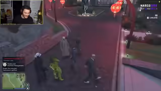 03:32:59Es wird nach einer Mülltonne gesucht, um sich in Anwesen einzuschleichen. Der Plan wird diskutiert und es wird festgestellt, dass ein Auto des Medical Department gestohlen wurde. Sana schreibt dem Streamer und schickt ein Bild. Der Streamer reagiert darauf und unterstellt Sana Homosexualität. Er droht Sana und kündigt an, ihr das Leben zur Hölle zu machen, falls er sie auf Insta-Peach sieht. Er beleidigt Sana und äußert sich abfällig über ihr Aussehen. Es wird überlegt, ob man auf InstaPeach nach dem bellenden Straßenkötter Borlas Ojizana suchen soll. Der Streamer erwähnt, dass er ein Bild von dem Elfer in Unterwäsche hat und schickt es dem Streamer. Es wird überlegt, ob man in Hamas Mamas feiern gehen soll. Der Streamer hat aber eine Mission. Es wird überlegt, ob man Dispatch-Hilfe für Mediziner machen soll, die bedroht werden. Es wird ein Dispatch gemacht und Humpty soll den Not-Knopf drücken. Es kommt zu einer Konfrontation mit Medizinern, die bedroht werden.