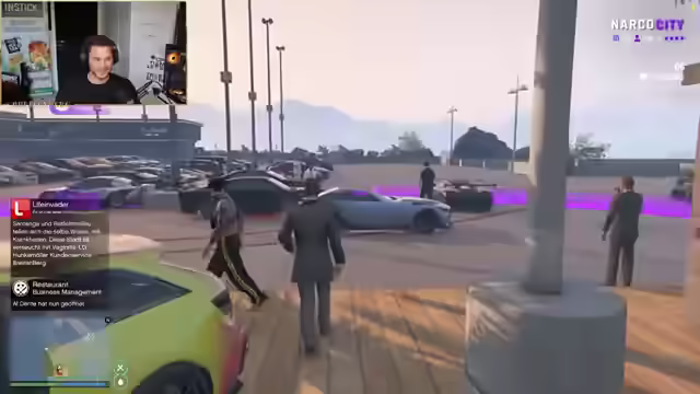 00:15:30Es wird über die Vergangenheit des Streamers gesprochen, insbesondere über seine Zeit vor dem Koma. Er gibt an, ein Copcaller gewesen zu sein, was von seinen neuen Bekannten nicht respektiert wird. Er verspricht, sich dem Gesetz der Straße anzupassen und sich nach seinen neuen Freunden zu richten. Es wird über alte und neue Gangs gesprochen, darunter die Mgler und Narko, die nicht mehr existieren. Maghreb, die Araber, werden ebenfalls erwähnt. Der Streamer trifft auf Arja und John und macht anzügliche Bemerkungen über Johns Freundin. Er gibt an, dass er Baron und Erbe des Golfclubs ist, was von Valentino, einem Investor, in Frage gestellt wird. Es stellt sich heraus, dass Valentinos Business dicht ist und er vier Millionen in den Golfclub investiert hat. Der Streamer verspricht, Valentino zu helfen, wieder an sein Geschäftskonto zu kommen. Er speichert Martin als Freund ein und betont, dass er Chaos stiften will. Er schlägt vor, Santanga zu ruinieren, und erfährt, dass er eine Datingshow mit Santana macht. Der Streamer bietet an, Santana zu unterstützen und das T-Wort für ihn zu sagen.