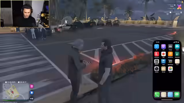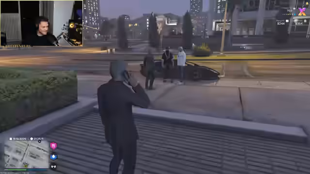 04:11:38Zunächst werden mehrere schwarze BMW X5-Fahrzeuge beobachtet, die mehrfach an der Bank vorbeifahren. Dies führt zu der Annahme, dass es sich um potenzielle Kunden oder eine Bedrohung handelt. Der Streamer äußert seine Besorgnis, dass diese Personen eventuell einen Kredit wollten und nun nach einem anfänglichen Ablehnung durch die Bank nun die Gruppe aus Rache angreifen könnten. Es entsteht eine allgemeine Verwirrung über die Identität und Absichten der Insassen der Fahrzeuge.