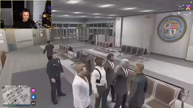 04:30:17Ein Mitglied der Jackson-Leis-Gruppe, Malik, kontaktiert die Bank und bietet an, den Konflikt für 20.000 Dollar zu beenden. Im Gegenzug soll eine schriftliche Erklärung abgegeben werden, dass keine Anwälte eingeschaltet werden. Währenddessen wird einer der Angreifer, Buddy Love, von der Polizei festgenommen, was den Streamer dazu bewegt, sofort zum Polizeidepartement zu eilen, um dort eine Zeugenaussage zu machen und seine Version der Ereignisse darzulegen.