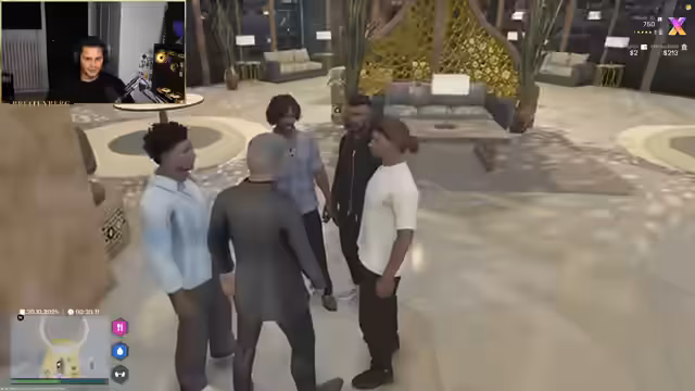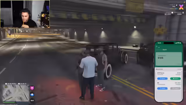 00:29:34In einem privaten Gespräch auf der Terrasse versucht Hamza Muchta, den Streamer für einen kriminellen Plan zu gewinnen. Er möchte Waffen und Dynamit kaufen, um Banken auszurauben, und bietet dem Streamer einen Anteil an der Beute an. Daraufhin etabliert der Streamer ein neues System: sogenannte Minikredite bis zu 5.000 Dollar ohne Bonitätsprüfung, bei denen der Kreditnehmer nur einen wertvollen Pfandgegenstand hinterlegen muss. Hamza erhält daraufhin seinen ersten Minikredit und holt eine Pistole als Pfand ab.