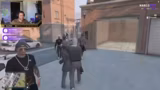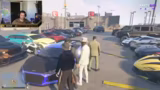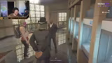 00:28:19Der Streamer und seine Begleiter betreten die fiktive Welt von NarcoCity und übernehmen die Rollen von Charakteren in einer kriminellen Story. Eine reale Begegnung mit einem Polizisten (Sheriff) eskaliert schnell in eine Geiselnahmesituation. Es entstehen komplexe Verhandlungen zwischen den rivalisierenden Parteien, wobei absurd-fiktive Forderungen wie der Austausch von Geiseln gegen eine Kaffeemaschine gestellt werden, was den Einstieg in das Rollenspiel-Drama markiert.