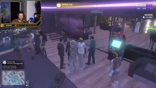 04:03:39Im Rahmen einer fiktiven Interaktion mit einer Dame namens Marsha im Narko-City-Stream werden kriminelle Pläne geschmiedet. Der Streamer und sein Gegenüber, Breitenberg, diskutieren ein Geschäftsmodell, bei dem Frauen entführt, ihr Gehirn gewaschen und anschließend als Prostituierte eingesetzt werden sollen, um Konkurrenz zu einem Tom Hagen aufzubauen. In diesem Kontext werden auch neue Charaktere wie Bronco und Cherry vorgestellt, die in die kriminellen Aktivitäten eingebunden werden.