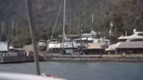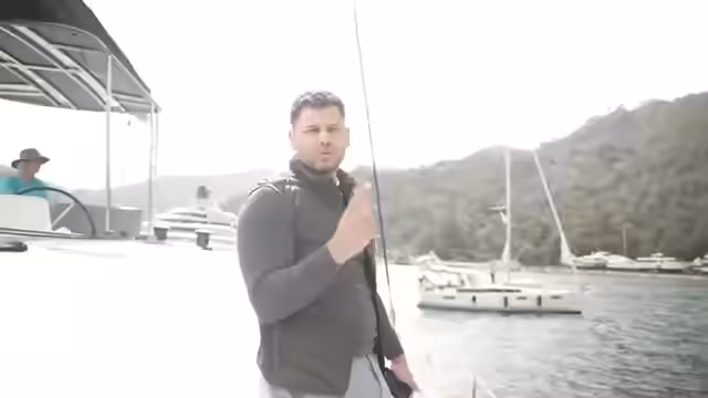 00:14:27Der Stream beginnt mit der Ankunft in einer traumhaften Bucht mit karibischem Wasser. Die Crew führt das Boot in eine geschützte Marina ein, wo sich auch zahlreiche Luxusyachten befinden. Ein zentrales Thema ist die Übelkeit aufgrund von Wellengang, die der Streamer überwinden musste. Die Vorsegel (Genoa) wird eingeholt, um in die flache Bucht manövrieren zu können, was die Flexibilität des kleineren Bootes im Vergleich zu den großen Yachten unterstreicht.