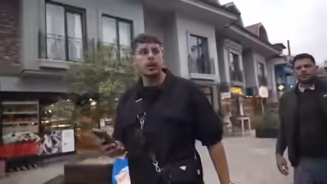 05:15:20Im Anschluss an die Schärfe-Challenge teilt der Streamer eine humorvolle Anekdote über einen früheren Vorfall, bei dem er einen Arbeitskollegen versehentlich in einem Solarium einschloss, was zu einem Polizeieinsatz führte. Nach dem Essen treffen sie zufällig auf den Hund von gestern und erkunden einen herausragenden türkischen Gourmet-Supermarkt namens Makro, dessen Größe und Produktvielfalt sie beeindrucken, insbesondere das Angebot an Gold-Eiweiß-Shakes.