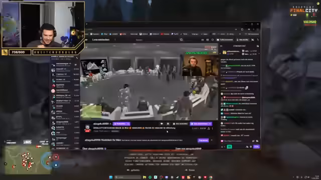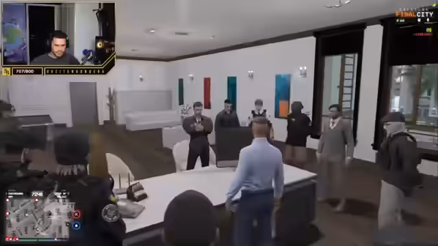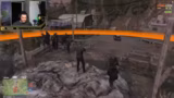 02:13:23Die Spannung steigt, als auf der Waffenroute Schüsse fallen. Es wird gemeldet, dass drei Männer des Stream-Teams auf dem Berg liegen und angeschossen wurden, möglicherweise vom Kartell 'Kali' oder der 'GmbH'. Nachdem ein Fahrzeug der GmbH auf das Team geschossen hat und in deren Anwesen geflüchtet ist, wird der Entschluss gefasst, das Gebäude zu stürmen. Als die Stürmung beginnt, stellt das Team fest, dass die Gegner hauptsächlich in den Gebäuden positioniert sind und nicht auf den Dächern. Ein Heli-Absturz aufgrund eines technischen Bugs erschwert die Operation und unterbricht die Aktion kurzzeitig, bevor der Sturm auf das Gebäude fortgesetzt wird.
