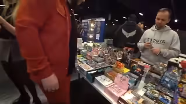 00:52:12Während der Erkundung der Messe stoßen die Streamer auf verschiedene Stände und Merchandise-Angebote. Besonders faszinierend finden sie Stande für Gamecube und das dazugehörige Zubehör. Zudem gibt es intensive Gespräche über Sammelkarten-Spiele wie Pokémon und Yu-Gi-Oh!. Sie bewundern die teuren und kunstvoll gestalteten Karten, wie die neuen One Piece-Karten, und diskutieren über die Value und die Geschichte dahinter, was die kulturelle Bedeutung der Messe unterstreicht.