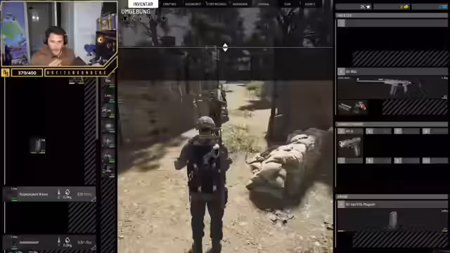 03:28:58Die Gruppe durchsucht Kisten in einem Lagerhaus, findet jedoch zunächst keine Gegenstände. Als endlich Gewehre wie eine M200 und ein 1891 auftauchen, entspinnt sich ein Streit, da einige Teammitglieder den Loot sofort an sich nehmen wollen, ohne den Streamer abzusichern. Er weist darauf hin, dass sie sterben könnten, da er nicht geschützt ist, und betont, dass die Ausrüstung geteilt werden soll, egal wer zuerst etwas findet. Plötzlich taucht ein Spieler namens Pipa auf der Leiter auf, was zur schnellen Flucht und Verletzung des Streamers führt, der sofort verarztet werden muss.
