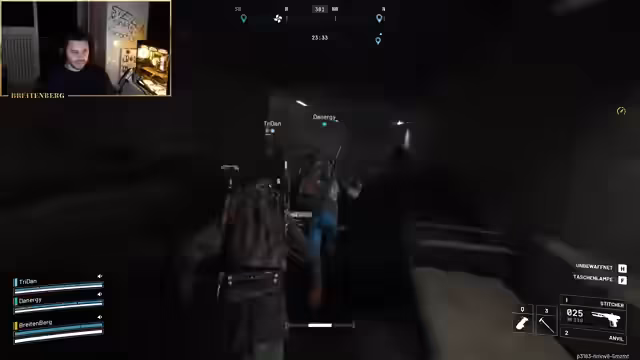 08:58:22Am Ende des Streams wird die positive Chemie im Team gelobt. Ein Teilnehmer kündigt an, sich zukünftig oft ungefragt in die Runden seiner Mitspieler einzuschalten, was auf einen starken Zusammenhalt und Spaß miteinander hindeutet. Die Runde endet mit der Frage nach weiteren gemeinsamen Aktionen und dem Ziel, weiter im Spiel zusammenzuarbeiten und zu looten.