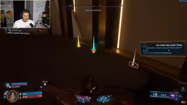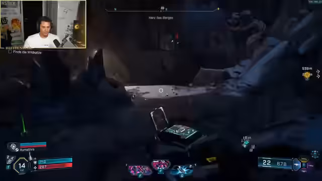 05:23:30Die Spieler sind der Meinung, dass sie vom Late Game noch weit entfernt sind und derzeit nur Midgame-Inhalt erleben. Trotzdem suchen sie nach befriedigenden Waffen und versuchen, den letzten besiegten Boss erneut zu farmen. Als dies nicht direkt möglich ist, beschließen sie, die Hauptmission fortzusetzen, was jedoch zu Orientierungsproblemen und einem Zickzack-Kurs führt. Die Modifizierung einer Waffe mit einem Messer-Aufsatz wird als neue Entdeckung gefeiert.