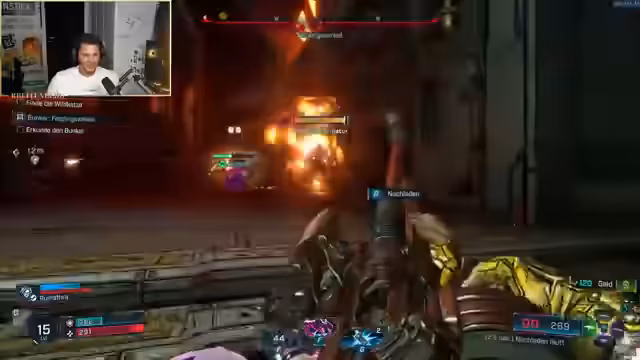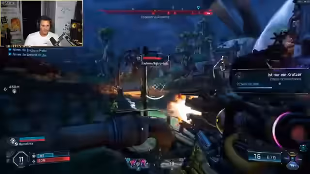 05:41:08Es wird eine Warnung vor einer Stimme erwähnt, die von der Suche nach einer Sirene spricht. Die Spieler suchen nach Möglichkeiten, gefundene Module zu benutzen, um ihre Ausrüstung zu verbessern. Ein Dreischwänziger wird beschworen, und das Verlangen, etwas abzuschießen, ist groß. Die Spieler setzen ihre Quest fort, wobei einer der Spieler Hilfe benötigt. Eine Katze wird als starker Tank im Kampf hervorgehoben. Es kommt zu Verwirrungen bezüglich des Fortschritts der Quest und des korrekten Weges. Eigene Markierungen werden versehentlich gesetzt und können nicht entfernt werden. Einer der Spieler betont, dass Borderlands eigentlich vom Squad lebt, während der andere meint, es sei auch alleine spielbar. Es wird kurz über den beruflichen Hintergrund eines Spielers gesprochen, der Luft- und Raumfahrttechnik studiert hat. Ein Spieler stirbt und hat Schwierigkeiten, wieder hochzukommen, was zu humorvollen Kommentaren führt. Die Spieler testen Teleportationsmöglichkeiten und Fähigkeiten ihrer Pets. Ein immuner Gegner wird entdeckt, und verschiedene Fähigkeiten werden ausprobiert, um ihn zu besiegen. Die Spieler stoßen auf eine tollwütige Blume, die ihnen Probleme bereitet. Es wird diskutiert, wie man in einen bestimmten Bereich gelangt, und verschiedene Lösungsansätze werden ausprobiert.
