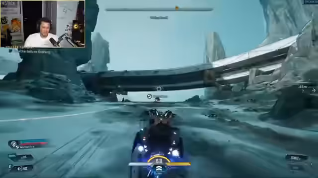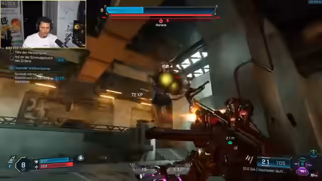 01:13:05Der Charakter erhält den Auftrag, eine Freigabe für einen Aufzug zu besorgen und erkundet die Umgebung, um diese zu finden. Nach einigen Irrungen und Wirrungen findet er die benötigte Freigabe bei einem der Monster. Es werden Missionen angenommen und Waffen bei einem Junkie namens Cat-Frap gekauft. Der Streamer passt seinen Charakter optisch an, testet verschiedene Waffen und Schilde und optimiert seine Fähigkeiten. Er stellt fest, dass die Wache sehr stark ist und freut sich über einen Kopfschuss. Es wird der Wunsch nach einem Multiplayer-Modus geäußert. Der Streamer experimentiert weiter mit verschiedenen Waffenarten und Elementareffekten, wobei Feuerwaffen gegen normale Lebewesen und Strom gegen Roboter bevorzugt werden. Nach einer Weile kann er D-Runner erzeugen, mit denen man Kairos durchqueren kann. Er kann sich nun sein eigenes persönliches Fahrzeug D-Strucken.
