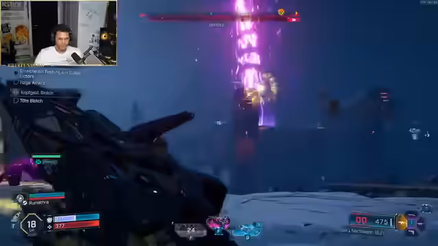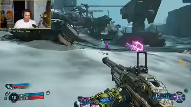 07:24:50Während des Kampfes treten technische Probleme wie ein Cam-Freeze auf, der kurzzeitig den Streamer aus dem Spiel wirft. Nach dem Neustart und dem Wiedereinstieg ins Spiel stellt er einen plötzlichen Levelaufstieg fest. Er zeigt und sortiert seine gesammelten Waffen, die er als sehr stark und manchmal bizart beschreibt, und versucht, die Steuerung und das Zielen zu meistern, um mit seinem Mitspieler weiterzukommen.