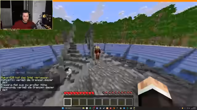00:00:45Der Livestream beginnt mit technischen Checks und Begrüßungen. Es entstehen unterhaltsame Verwechslungen mit Spielern wie Günther, wo über intellektuellen Austausch und Fäkalienwitze diskutiert wird. Der Streamer bittet um Essen und Führerschaft durch die Stadt, wird jedoch bei einem Sprug in den Abgrund von einem Enderman getötet. Es folgen Klagen über Überlebensmechaniken und Probleme mit Menübedienung, während gleichzeitig über die Basis der Stadt gesprochen wird.