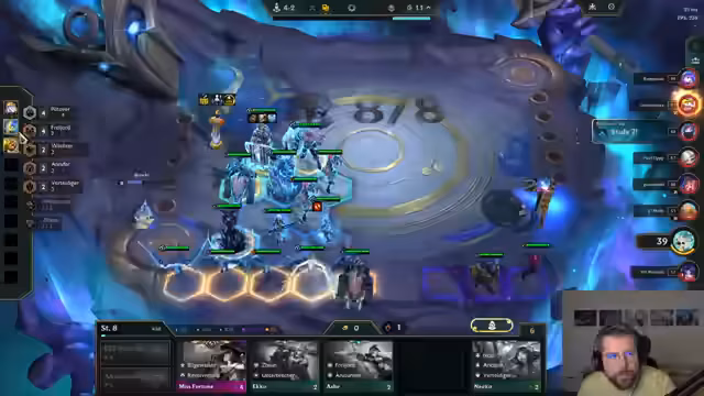 04:30:37Der Streamer reflektiert, dass eine Full-Defender-Strategie wohl besser für einen Winning Streak gewesen wäre als Yordle. Er kauft Timo, plant aber nicht, ihn auf 3 Sterne zu entwickeln, und fügt stattdessen Garen als Frontline hinzu. Nachdem er bemerkt, dass ein Mitspieler starke Champions wie Kaiser 2 und Swain 2 hat, aber schlechte Items, passt er sein Board an und integriert Nico für Arcanist-Bonus. Er betont, dass Rumble Spaß macht, aber das Spiel weiter schwierig bleibt.