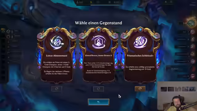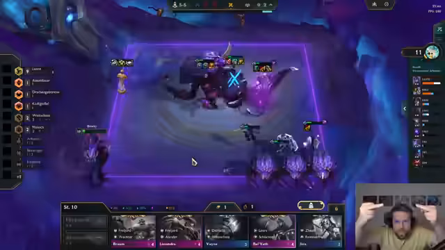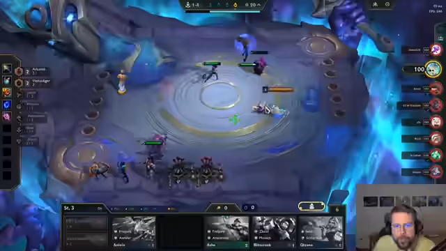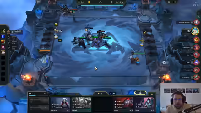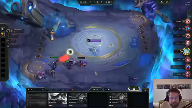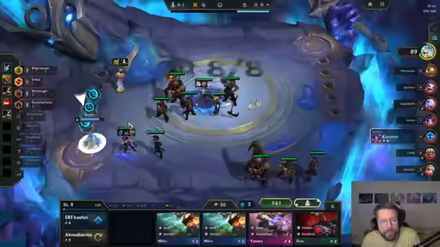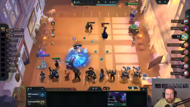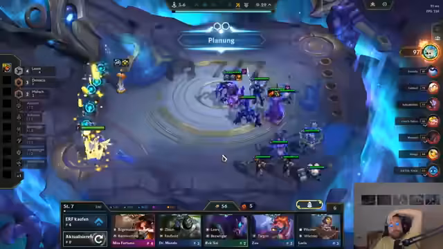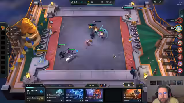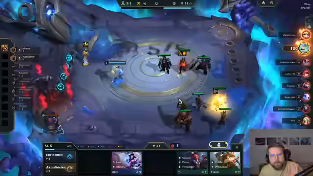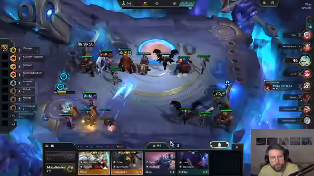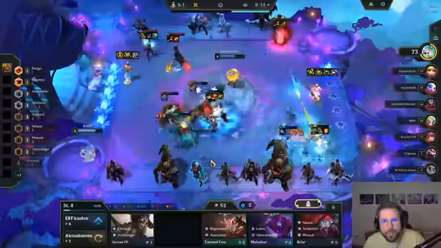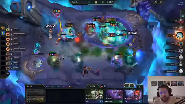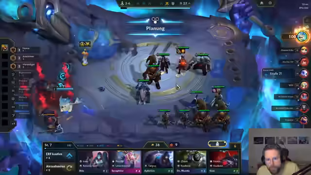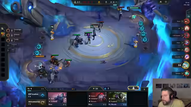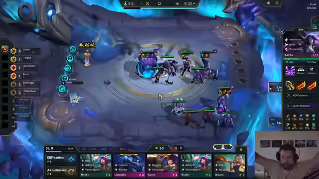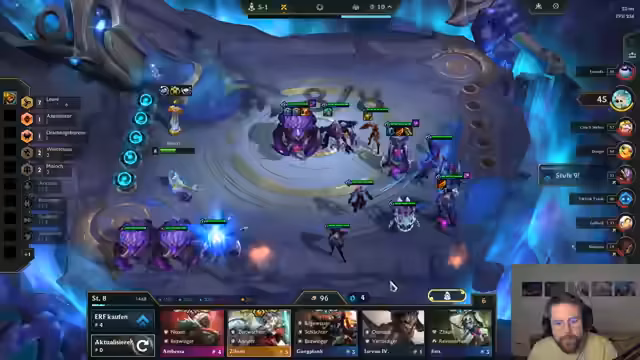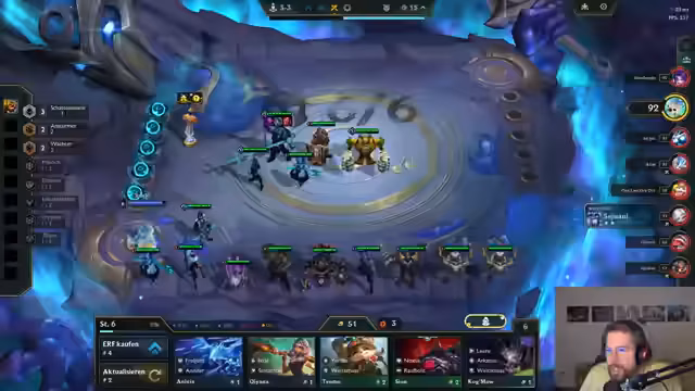 00:00:06Der Streamer beginnt mit vorsichtigen Schritten und freischaltet Sahin. Er plant, weitere düstere Charaktere zu aktivieren, benötigt dafür jedoch mehr Omni-Vamp. Strategische Überlegungen zu Items wie Infinity Edge oder Titans werden diskutiert, wobei er die Herausforderung beim Mana-Management beschreibt. Die Diskussion dreht sich um Champion-Synergien, Teigkatzen-Vorkommen und das Revive-Potential von Einheiten. Er strebt Triple Darkin an, erklärt die Mechanik (600 Leben pro Darkin, 200 magischer Schaden pro Befundeten) und bemerkt, dass der Effekt weniger kraftvoll ist als erwartet.