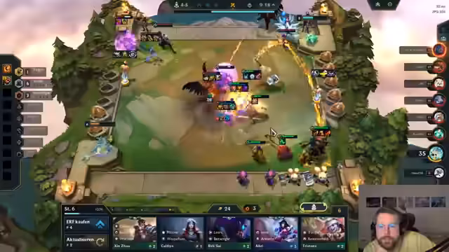 04:26:32Der Streamer plant, AP-Items zu farmen und eine Krone für Attack Speed und Leben zu nutzen. Er überlegt, Ilawi 3 zu kaufen, entscheidet sich aber gegen Rollen für Rumble und stattdessen für schnelles Erreichen des 6er-Yordle-Bonus, um kostenlose Re-Rolls zu erhalten. Er bereut, Tristana verkauft zu haben, und kritisiert Riot Games für die Champion-Verteilung. Später diskutiert er die Umsetzung von BT (Bloodthirster) als Frontline-Item in TFT.