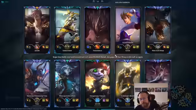 00:02:52Der Stream beginnt mit den Erinnerungen an gestern gespielte League of Legends Games. Es werden einige Champions vorgestellt und letztendlich Tristana als One-Trick für heute entschieden. Nach negativen Erfahrungen mit dem Matchmaking wird der Fokus gelegt, sich neu zu motivieren und Spaß zu finden. Der Streamer bittet die Chat, bei negativen Kommentaren im Chat zurückhaltend zu sein, um eine positive Atmosphäre zu wahren.