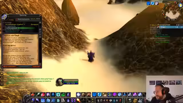 02:17:40Der Streamer beschäftigt sich mit diversen Quests, wie der Linken-Schwert-Questline, und äußert seine Frustration über das Navigieren und Zielverlust im Spiel. Er plant, einen Dungeon zu betreten, hat aber Probleme mit der Gruppensuche und dem Inventarmanagement. Ein wichtiges Thema ist auch der Gildenstatus. Er möchte Teil einer aktiven Gilde sein, um Vorteile wie Angeln zu nutzen, und erwähnt, dass er bisher kaum Berufe betreibt, was ihm nun als Level-60-Spieler Probleme bereitet.