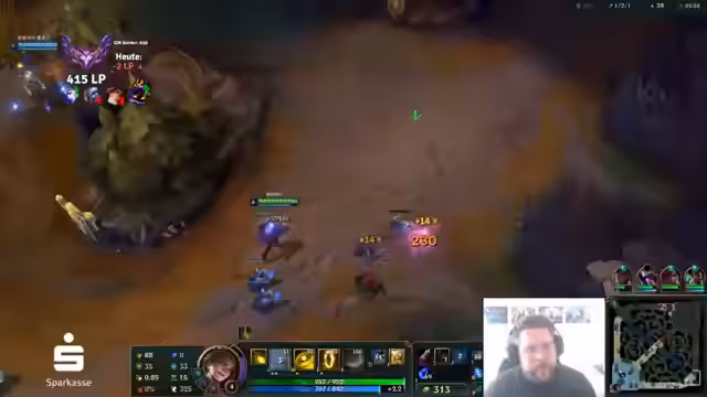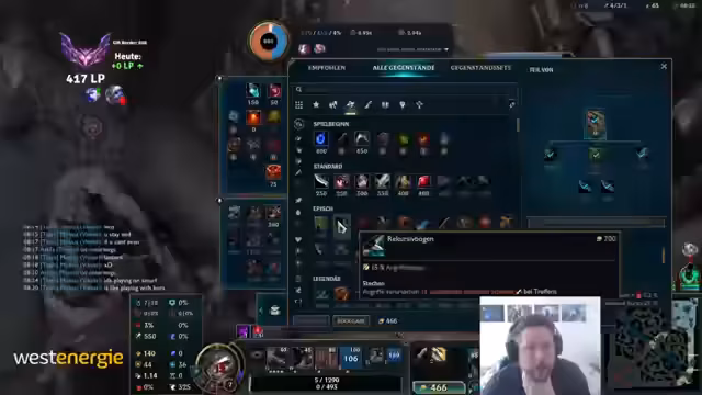03:37:23Zu Beginn des Streams beschäftigt sich der Streamer intensiv mit seinen Gameplay-Entscheidungen in League of Legends. Er kritisiert eigene Fehler wie zu frühe Pantheon-Einsätze und misslungene Trades, besonders im Spiel gegen Corki. Die Gwen wird als problematisch beschrieben, da sie nicht optimal ins Team-Line-up passt. Der Streamer analysiert verschiedene Champion-Picks und ihre Auswirkungen auf das Spiel, wobei er insbesondere das Problem von fehlender Gold-Effizienz und schlechtem Vision Control hervorhebt. Besonders frustriert zeigt er sich über wiederholte Fehler im Team, die zu unnötigen Kills und Game-Over führen.