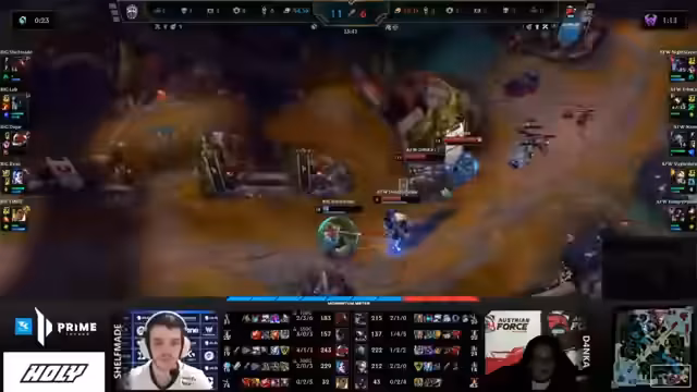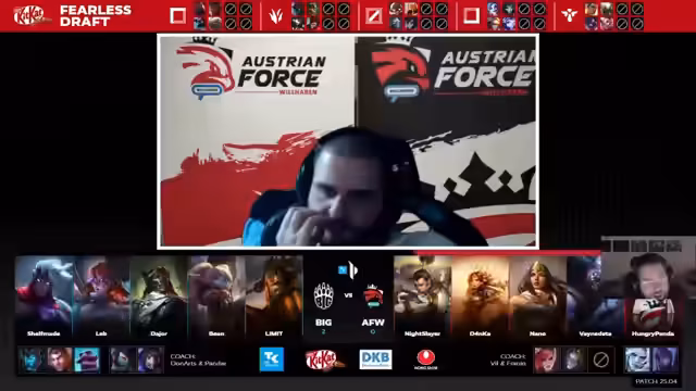 05:23:18Der Streamer wechselt zur Live-Übertragung der Prime League und analysiert das Spiel zwischen Big und Austrian Force. Er stellt fest, dass beide Teams in ihrer jeweiligen Liga dominiert haben und daher ähnlich stark sein sollten. Besonders interessant findet er das Line-up von Big, das stark vom Supporter Hungry Panda geprägt ist. Dieser wird als über-aggressiver Spieler beschrieben, der bei erfolgreichen Games stark ist, bei schlechten jedoch leicht Fehler macht. Der Streamer zeigt sich beeindruckt von der Spielqualität in der Prime League und verweist auf Erfolge in anderen Wettbewerben wie EU Masters.