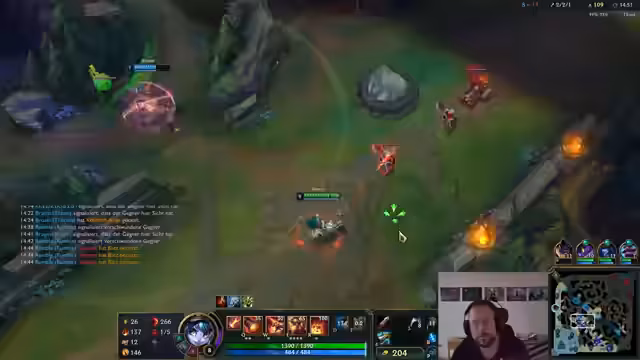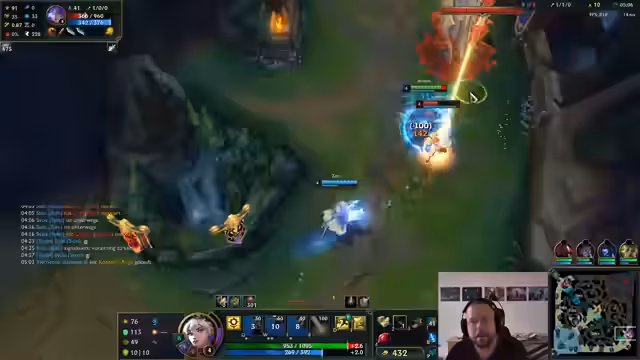 02:26:17Der Streamer analysiert ein League of Legends-Spiel, in dem er mit Corki auf der Top-Lane spielt. Er kritisiert Entscheidungen seines Gegners, wie die verspätete Nutzung der E-Fähigkeit von Vladimir, und äußert sich über das Balancing im Spiel. Er spricht über den Mangel an Silence-Effekten in der aktuellen Meta und vermisst alte Champions wie Talon mit dieser Fähigkeit. In der Mitte des Spiels gelingt ihm ein Kill, den er als "boomer" beschreibt, und der Gegner gibt auf.
