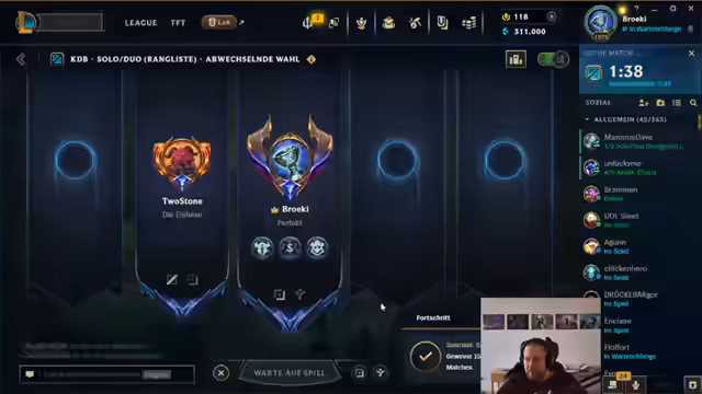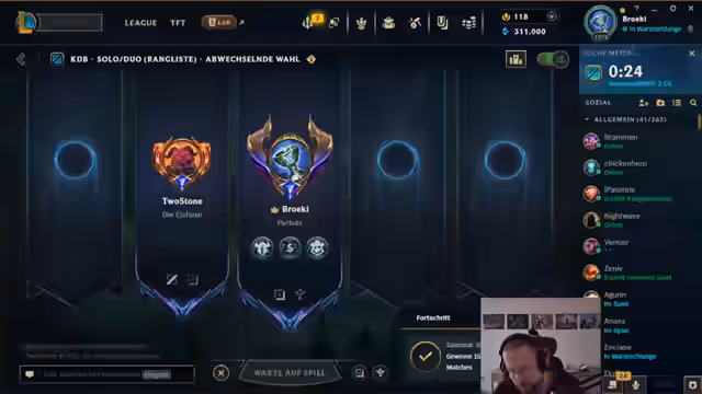 00:04:42Der Stream beginnt mit der Begrüßung der Zuschauer. Es wird geplant, ein Aram-Spiel zu spielen, wobei der Streamer die Möglichkeit erwähnt, auch mit zwei Steinen zu spielen. Er erklärt, dass er Duo-Q bevorzugt, da es mehr Spaß mache, und ruft Singles im Chat auf, sich bei ihm zu melden, wenn sie Lust auf ein gemeinsames Aram-Spiel haben.