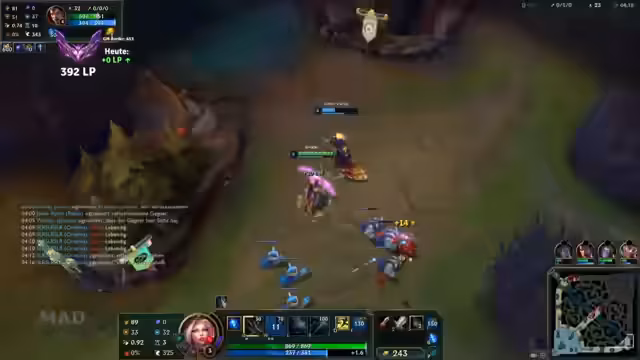 01:59:11Im Spiel treten technische und visuelle Probleme auf. Der Streamer meldet, dass bei ihm die Nachricht 'Lanesprop Detected' erscheint, was ihm vorgab, kein Gold mehr zu verdienen. Dies sorgte für Frustration und den Eindruck, Riot wolle ihn 'ficken'. Das Problem scheint sich aber vorübergehend gelöst zu haben, da er später wieder Gold erhält. Es wird vermutet, dass es sich um ein Missverständnis oder einen Anzeigefehler handelt.