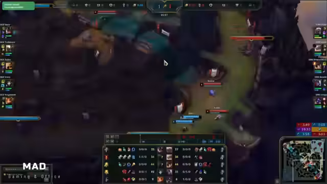 00:30:00Die frühe Spielphase beginnt mit einem erfolgreichen Gank auf der Midlane, bei dem der gegnerische Midlaner auf 1 HP gebracht wird. Es wird diskutiert, ob man den Kill abgeben oder selbst nehmen soll. Die Teammitglieder koordinieren ihre Bewegungen und planen, wie sie den Pantheon auf der Botlane ausnutzen können. Lillip äußert Bedenken bezüglich des gegnerischen Tempos und schlägt vor, über Mitte zu öffnen. Es wird überlegt, ob man den Grumpen überwachen und den TP zurückgeben soll. Die Teammitglieder beobachten den gegnerischen Asia, der kein Item gekauft hat und zur Base zurückkehren muss. Es wird geplant, die Grubs zu spielen und die Top-Ult zu nutzen, um Druck aufzubauen. Die Teammitglieder einigen sich darauf, die Wave zu ulten und den Pantheon zum Reset zu zwingen. Es wird spekuliert, dass der Pantheon nach der Base wahrscheinlich auf der Bot-Side sein wird. Die Teammitglieder diskutieren über die Bedeutung von Vision und die Notwendigkeit, die Bot-Side zurückzuerobern. Es wird festgestellt, dass der gegnerische Azi Half-Life ist und wahrscheinlich zur Base zurückkehren wird. Die Teammitglieder planen, die Grubbs als nächstes zu spielen und ihren Item-Vorteil auszunutzen.