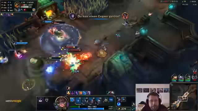 02:34:15Während einer Aram-Runde in League of Legends kommentiert der Streamer das Champion-Verhalten und die Spieldynamik. Er beschwert sich über 'übel nerviges Line-Up' und bewertet spezifische Champions als unsympathisch oder schwach, etwa Jumi ('sehr unsympathisch'). Mechaniken wie das Augment-System werden analysiert: 'Deine Mana-Kosten werden verdoppelt [...] Das finde ich spannend.' Trotz Herausforderungen lobt er den Modus als abwechslungsreich und chaotic.